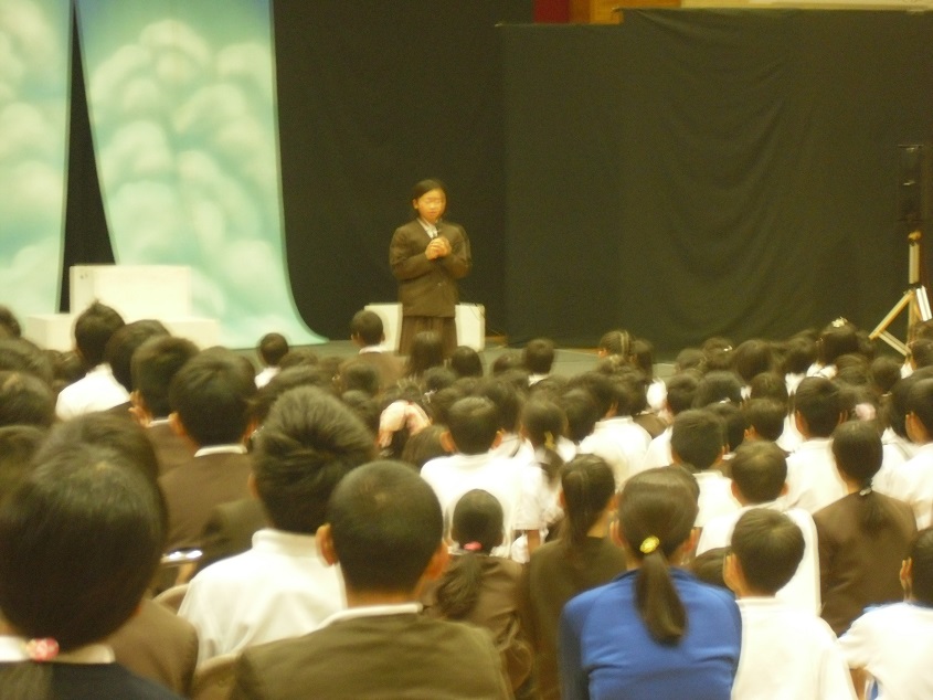 開会式の中で、人権作文の発表がありました。6年生の子どもが、本校の代表として立派に発表してくれました。