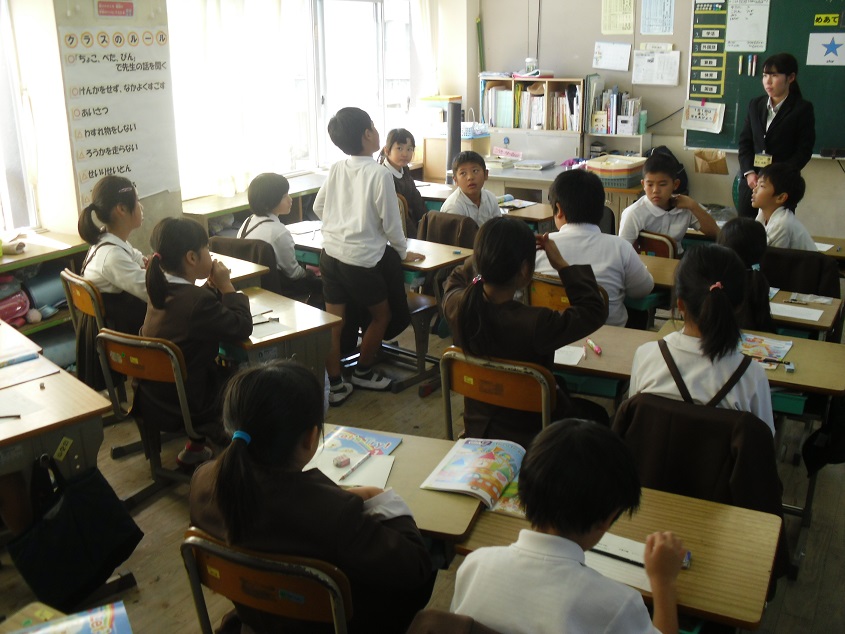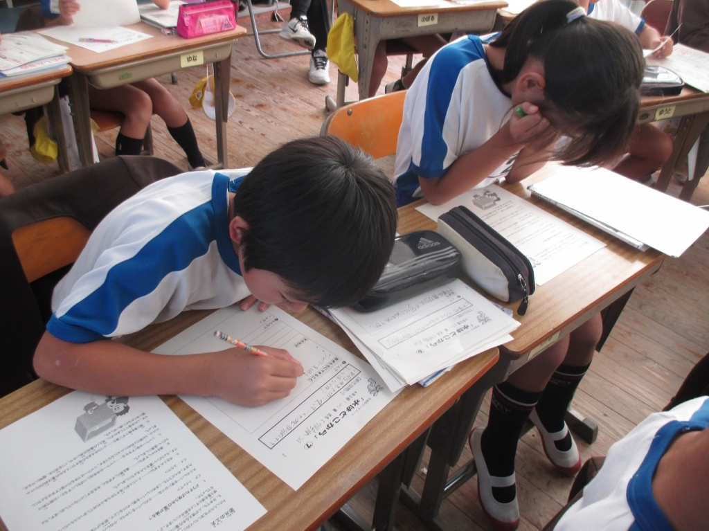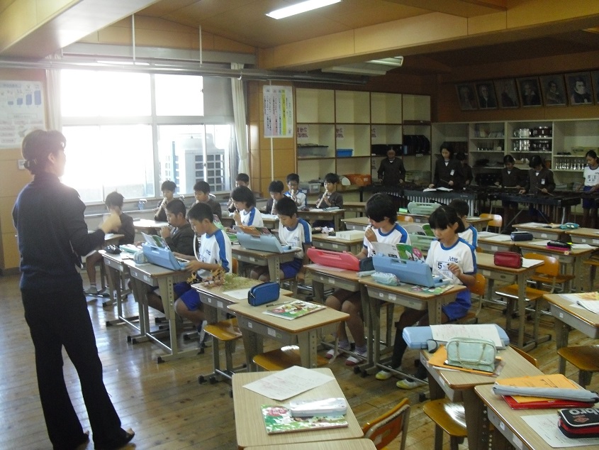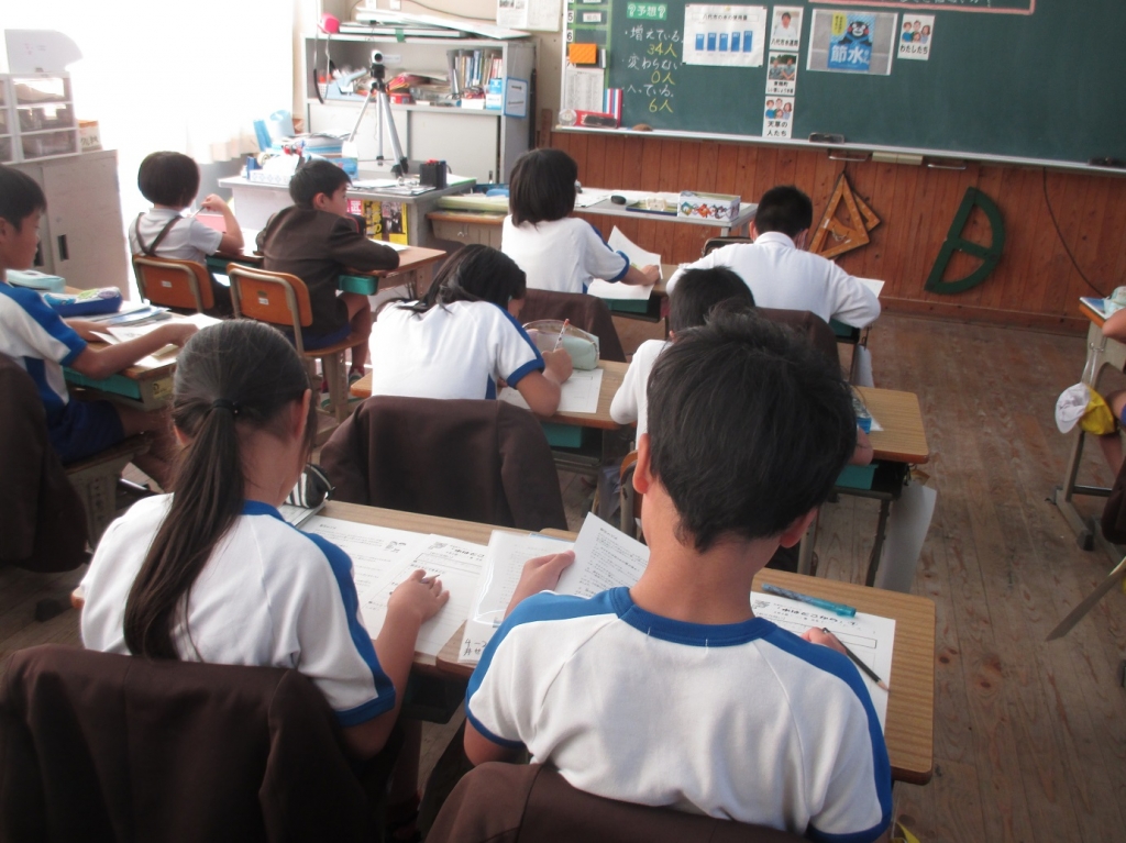 3時間目に、県立教育センターで研修を受けている先生の最後の検証授業がありました。これまで1か月以上にわたって、5年生と4年生での授業実践でした。