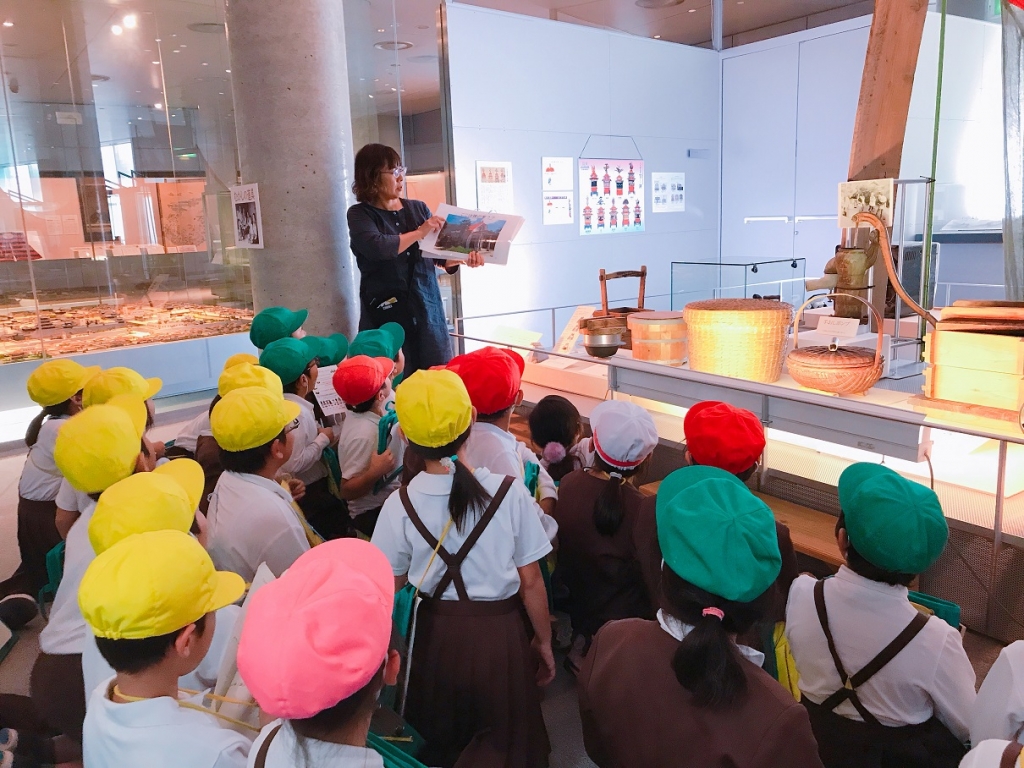 博物館では、社会科で学習する昔の道具について説明を受けました。