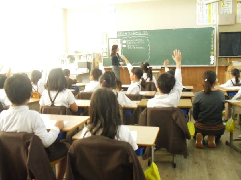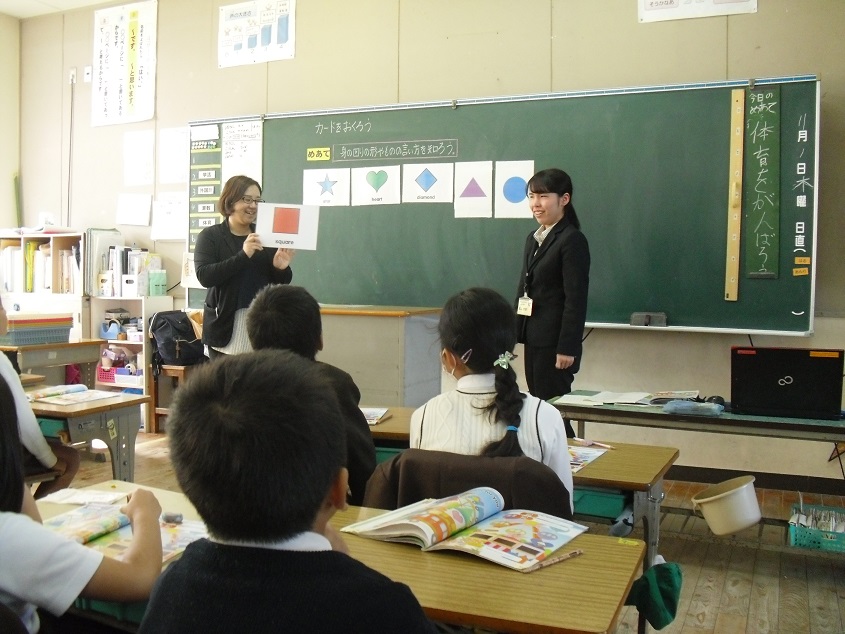 3年生から外国語活動が導入されて、7か月が経ちました。今日の色や形も上手に英語で発音していました。