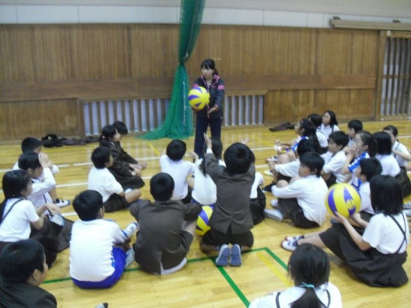 チームでアンダーやオーバーパスの練習をしました。先生方の話では、パスが続くようになってきたそうです。
