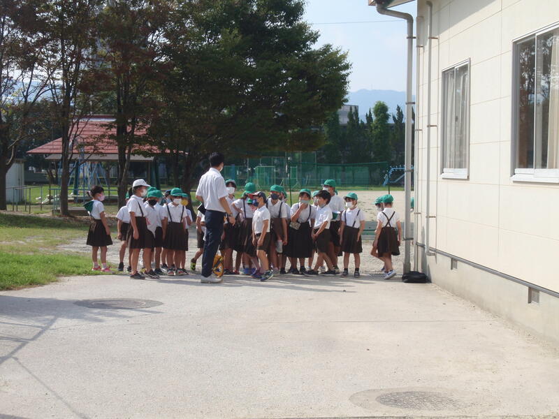 今日は、算数で100mってどれくらいか、歩いてみることにしました。