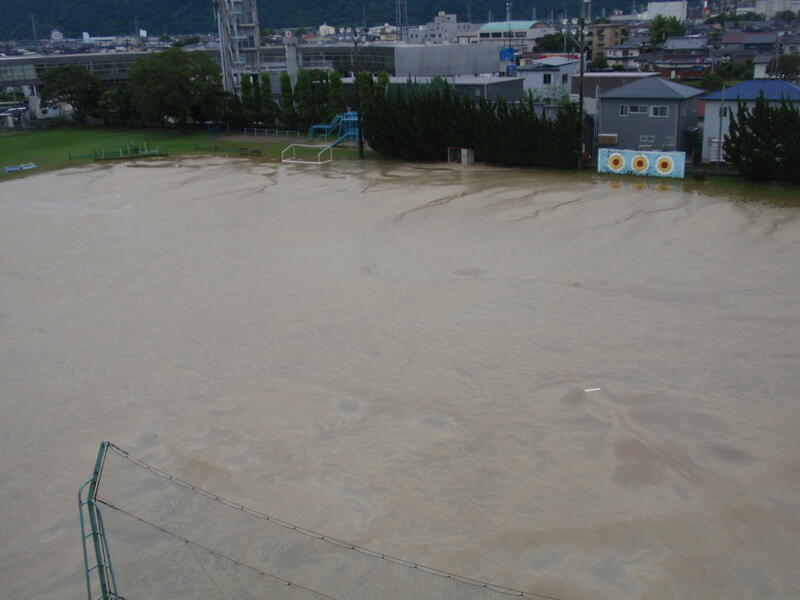 せっかくのお盆休みでしたが、雨ばかりでした。学校のグラウンドもかわく間もなしといったところでしょうか。
