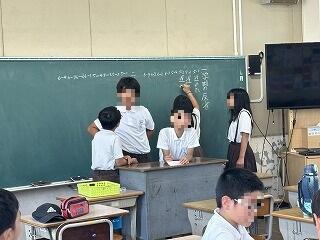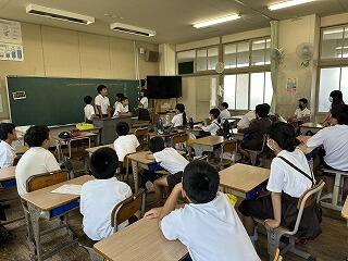 「部活のマーチングを頑張りたい。」「発表を積極的にできるようになった。」と1学期の振り返りと、2学期の展望について発表してくれました。