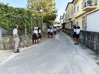 児童の避難の仕方と職員が児童の安全確保のためにどのように動くのかを、実際に動いてみることで確認しました。