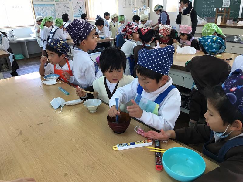 1年生みんなで育て収穫した大根をつかって、おでんパーティーをしました。あつあつできたてのおでんを口いっぱいほおばり、おいしくいただきました。