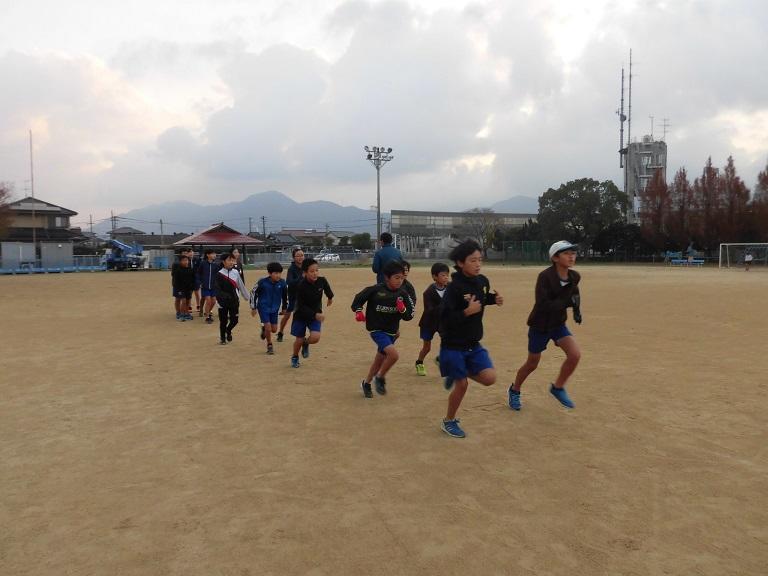【運動場周回】運動場を周回し道路へと出て行きました。