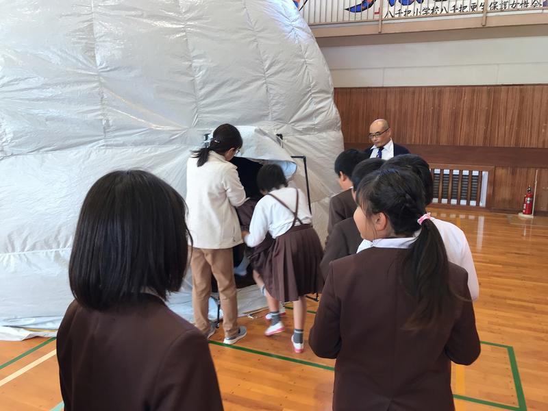 本日は理科ネットワーク事業として、さかもと八竜天文台の方においでいただきました。4年生「月と星」の学習でおもに星についての学習をしていただきました。プラネタリウムドームを体育館に設置していただき、子どもたちはわくわくの授業となりました。
