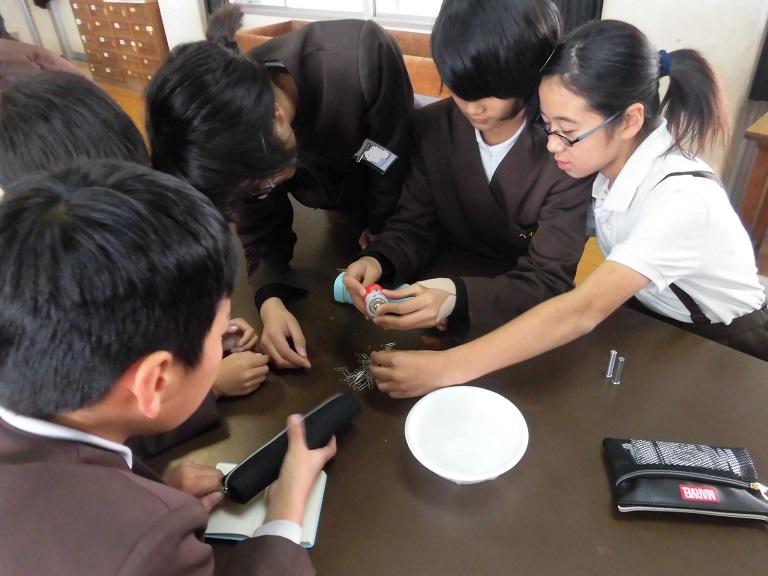【電磁石実験】「銅はつくのかなあ」と半信半疑の様子でした。