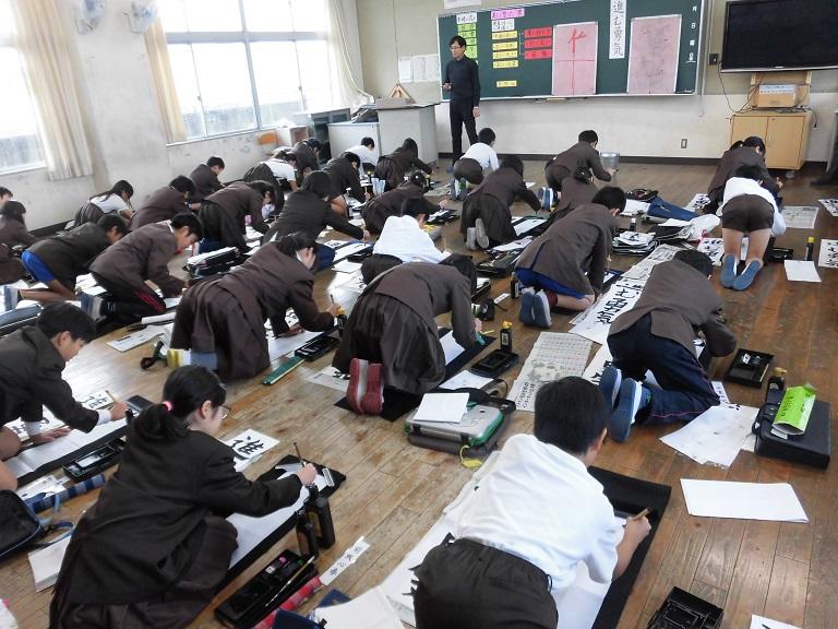 書写の学習に外部講師の先生が来られました。5年生書き初め課題「進む勇気」についてじっくり教えていただきました。八代市内の子どもたちが手にする手本を書かれている先生の授業で、子どもたちも意欲的に学習していました。