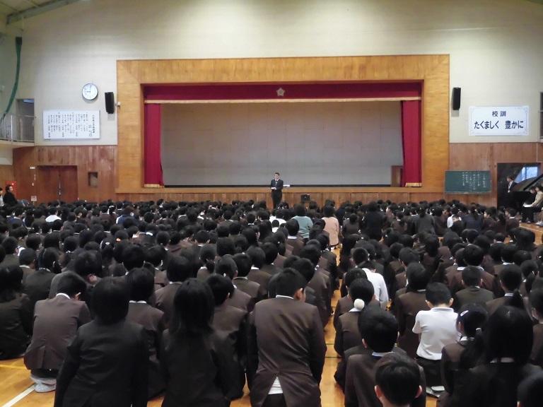 令和2年最初の校歌斉唱でした。体育館に大きな歌声と素敵な伴奏のメロディが響き渡りました。