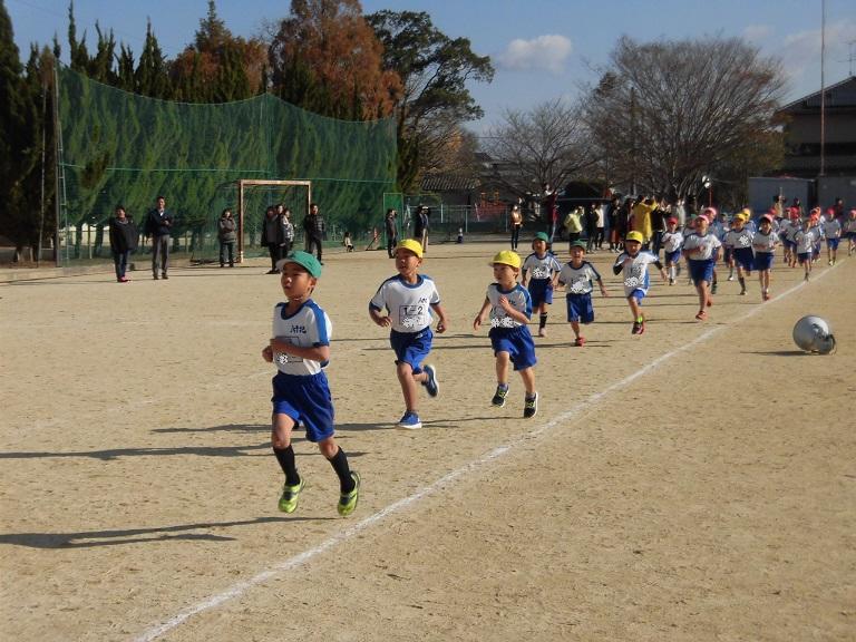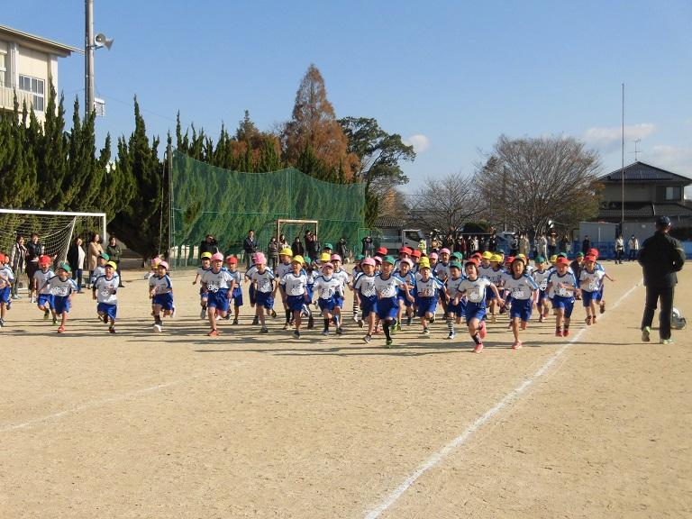 【スタート】校長先生のスタートの合図で各町内代表の子たちが一斉にスタートしました。
