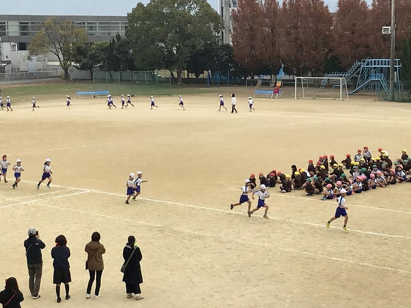 快晴の本日、1年生の持久走大会がありました。小学校初めての持久走大会に1年生は全力で取り組みました。練習の時は、ライバルの子に負けて悔し泣きする子もいるようで意欲満々でした。大会では、全力で走る子どもたちを多くの保護者の方が見守っておられました。