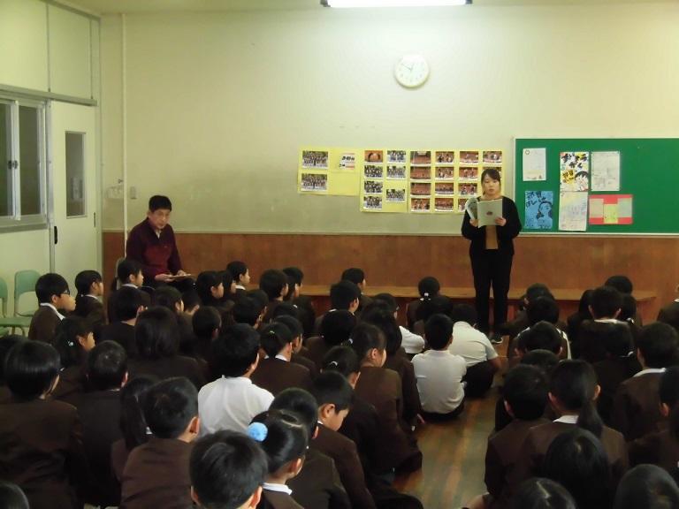 【読み聞かせ】人権文集「みつめる」の読み聞かせをじっくり聞いていました。