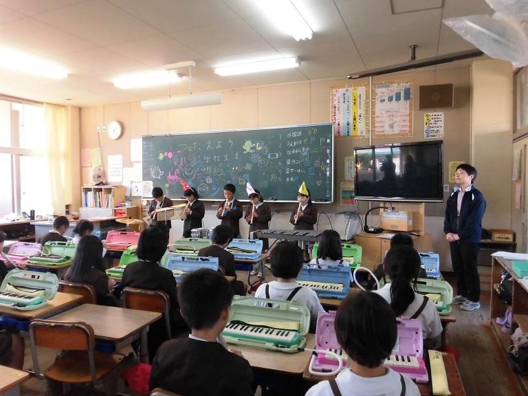 一斉に息を吹いて演奏に挑戦しました。