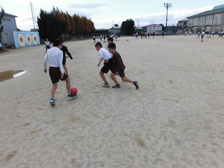 学級遊び、ドッジボールでした。この後、当たって悔しがる男子でした。