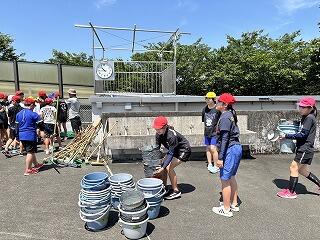 プール掃除 初めての書写 5年「集団宿泊教室」