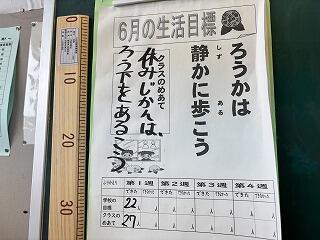 それぞれのクラスでもめあてを決めて取り組んでいます。