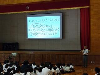 「心のきずなを深めるための約束」の確認と「困ったことがあったら、ひとりで我慢せずに誰かに話すことが大事」という話をされました。