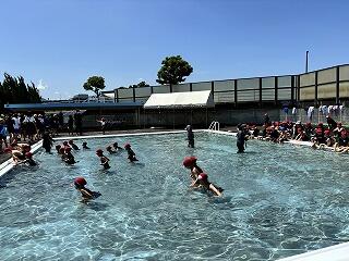 1年生にとっては初めてのプールです。言われたことを守ってとても楽しそうに活動しています。