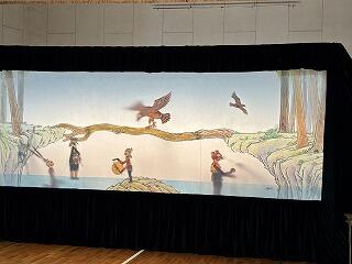 影絵について説明していただきました。動きのリアルさに、子供たちもすぐに引き込まれました。