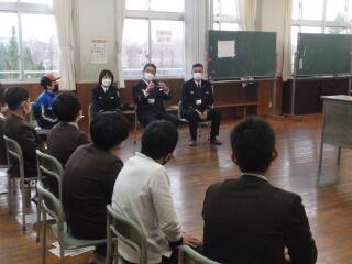 警察の方やスクールサポーターの方にも訓練の様子を見ていただき、学校の対応についてご指導いただきました。