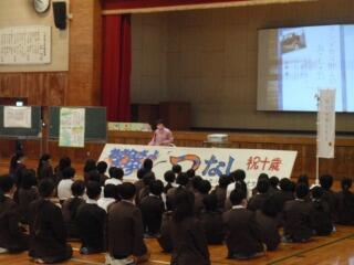 八千把小学校では、毎年、更生保護女性会のみなさんが、地域の子どもたちが10歳(ひとつ、ふたつ…のつがとれる年齢)になったお祝いをしてくださいます。そこで、命の大切さについてもお話ししていただきました。子どもたちは、家庭の宝であると同時に、地域や国の宝でもあります。その宝の健やかな成長を支えてくださる地域の方々の活動はとても尊く、私たち学校職員も深く感謝しております。