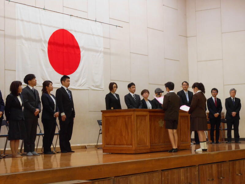 最初に就任式を行いました。今年度は、新しく19人の職員を迎えてのスタートとなりました。