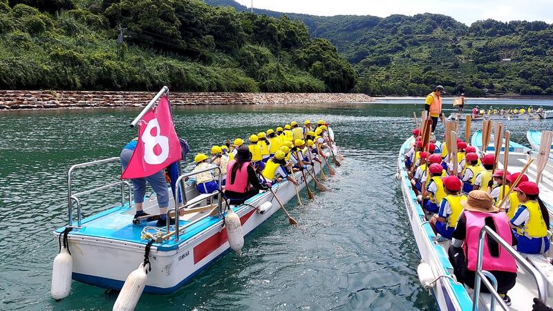磯観察の後は、ペーロン船をみんなで漕ぎました。船を前進させるには、みんなで力とタイミングを合わせて漕がなければなりません。きつかったけど、みんなでがんばりました!