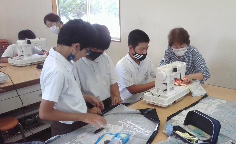 6年生が家庭科の学習でエプロンを製作しています。