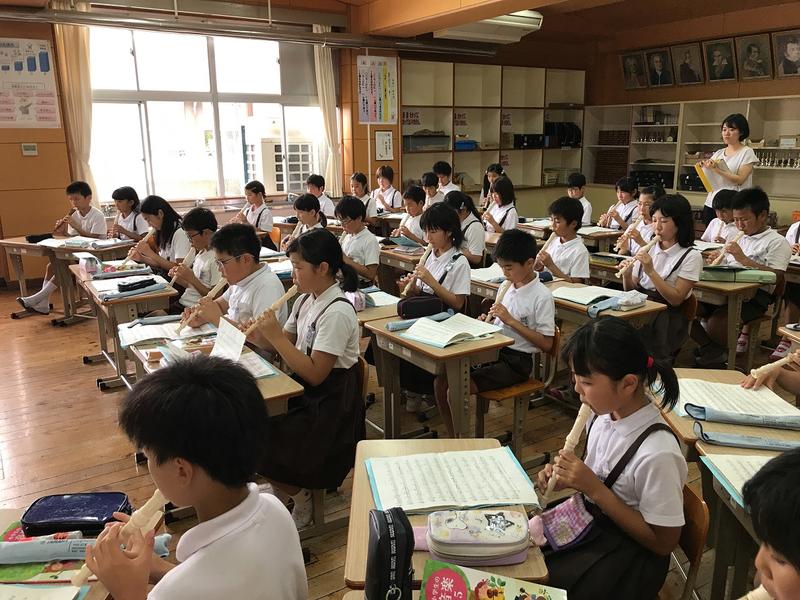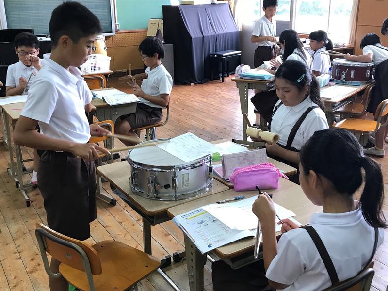 今日は、学び合い授業(合い研)が音楽室でありました。5年2組の子たちに音楽専科の先生が授業をされました。子どもたちはリコーダーで素敵な音色を奏でていました。また、リズムアンサンブルをつくる時には友だちと考えを出し合い、楽器を選び、リズムを組み合わせる活動をしていました。今回の授業では、初任の先生の学びの場としても提供していただきました。音楽の授業は専門性が高いと思われますので、専科の先生が授業していただけることは、子どもたちにとって、より効果的な授業展開ができると考えます。また、その授業を学ぶ先生方にとっても大いに参考となると思います。これからも合い研を通して、校長先生が常々言われます「子どもファースト」で、よりよい授業を子どもたちとともに作り上げていければと思います。