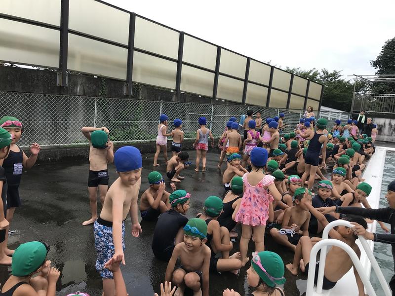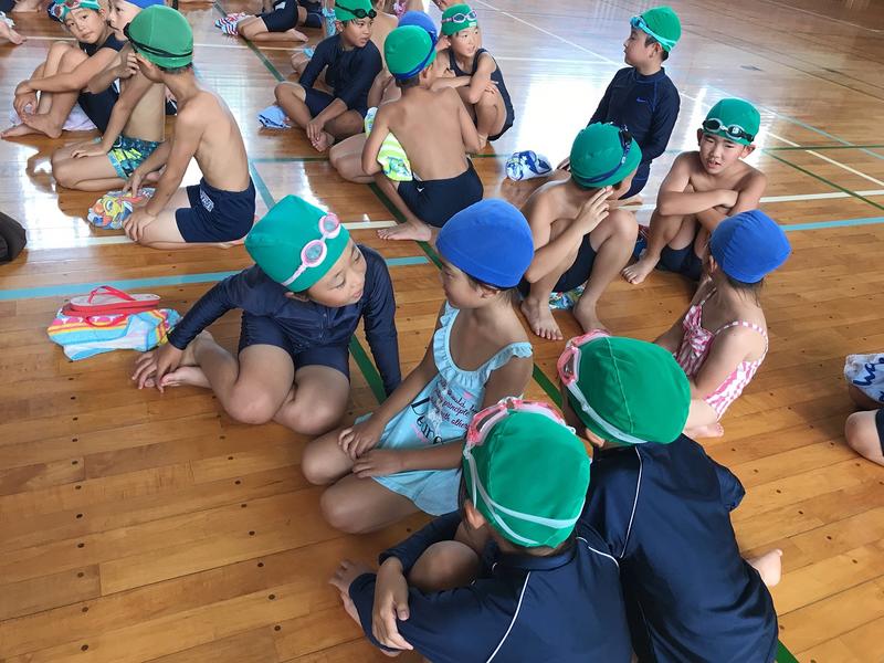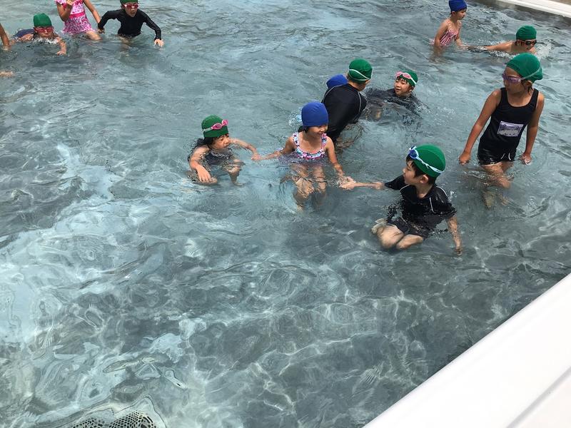 服を着たまま、泳ぎました。重くて泳げない子もいました。