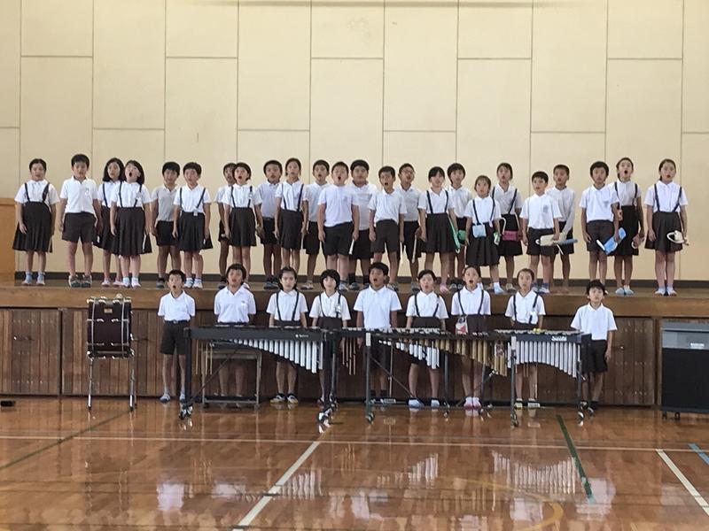 今日も朝から雨模様でしたが、徐々に晴れ間が見え始め、校内では子どもたちの元気な笑顔が見られました。体育館では、音楽会へ向けての練習が始まりました。夏休み入ってすぐの7月25日(木)に小学校・特別支援学校音楽会が開催され、本年度本校からは4年3組の児童が参加します。音楽室で練習してましたが、いよいよ本番まで2週間とせまり、子どもたちの気持ちも高まっているころです。本番当日が笑顔で終われるよう頑張って練習してほしいと思います。