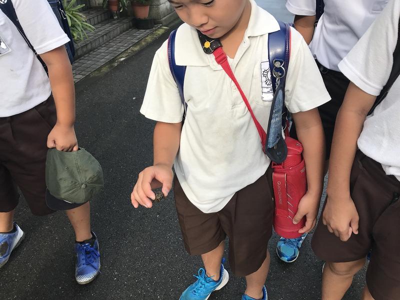 蝉をつかまえて登校してくる子もいました。大きなクマゼミでした。