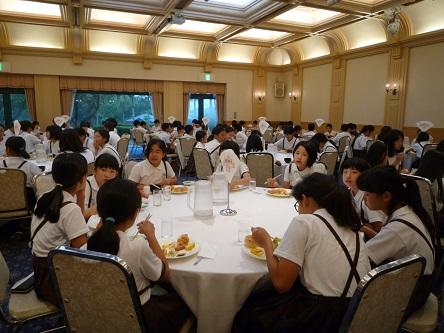 1日目の学習を終え、ホテルに到着しました。素晴らしい学習態度で、たくさんお褒めの言葉をいただきました。今日お世話になるホテルは、結婚式会場としても有名な「西海橋コラソンホテル」です。豪華な夕食と広い大浴場、快適な部屋での就寝など、たくさんの思い出がホテル内でもできることと思います。