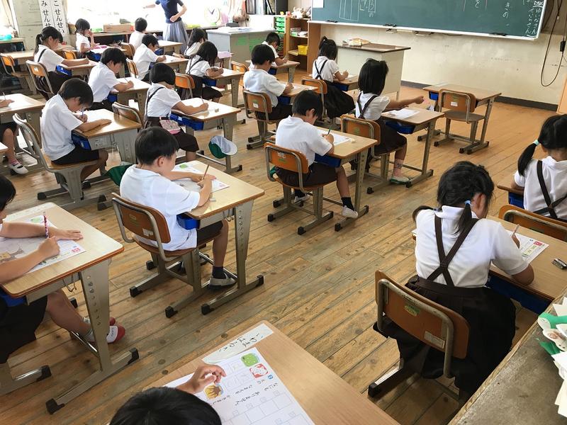 今日は朝から曇り空で、教室内の湿度がずいぶん高いように感じました。そんな中でも子どもたちは生き生きとした姿で学習に参加していました。