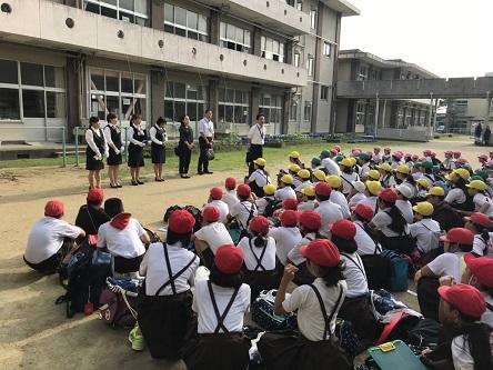 校長先生からは3つの言葉をいただきました。「思いやりの気持ちを持つこと」「一生懸命取り組むこと」「考えて行動すること」子どもたちは真剣に聞いていました。