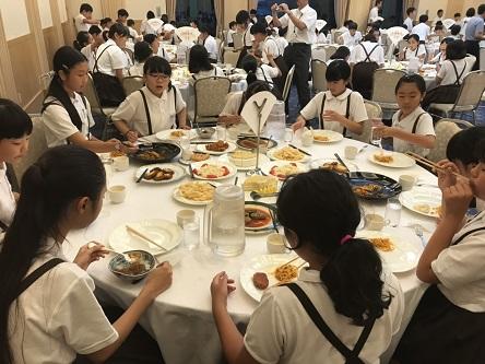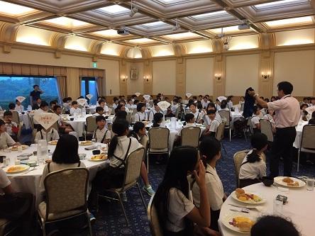 1日目の学習を終え、ホテルに到着しました。素晴らしい学習態度で、たくさんお褒めの言葉をいただきました。今日お世話になるホテルは、結婚式会場としても有名な「西海橋コラソンホテル」です。豪華な夕食と広い大浴場、快適な部屋での就寝など、たくさんの思い出がホテル内でもできることと思います。