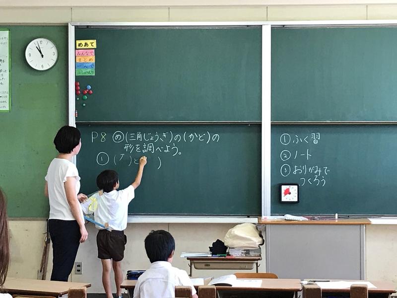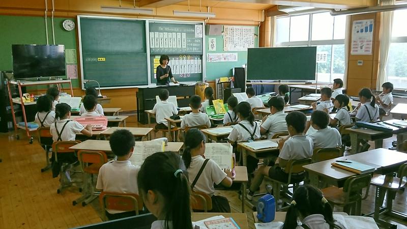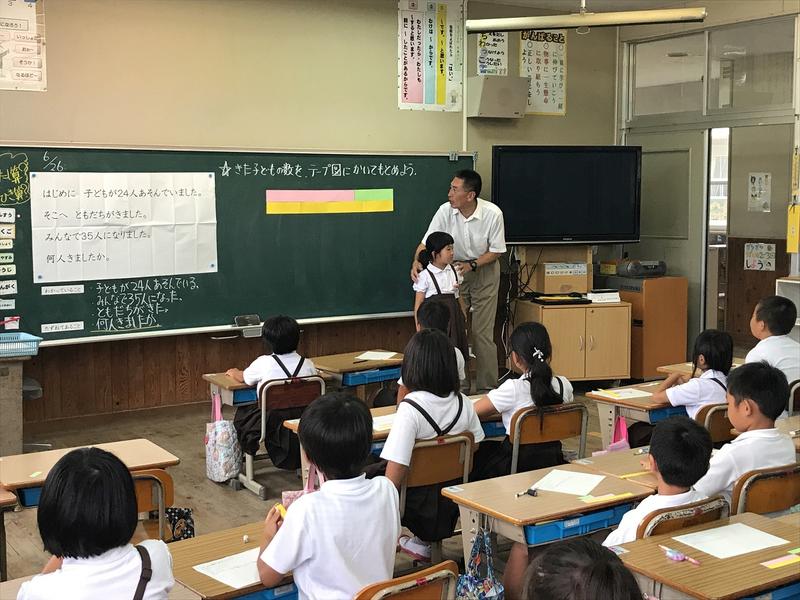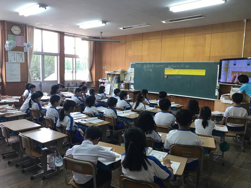 4年生の授業の様子です。担任の先生の話をしっかりと聞いて学習していました。
