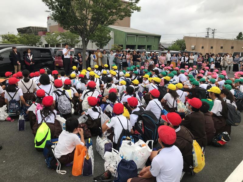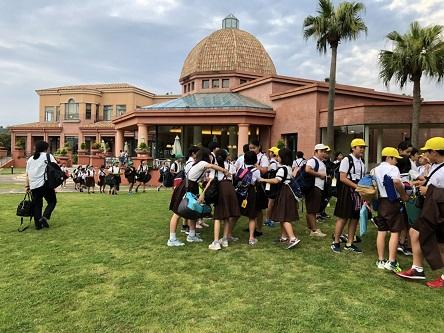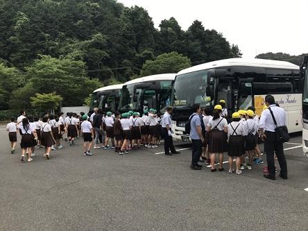 出発前に中庭に集合しました。みんな楽しみにしているようでした。