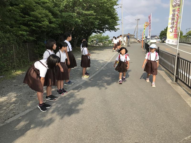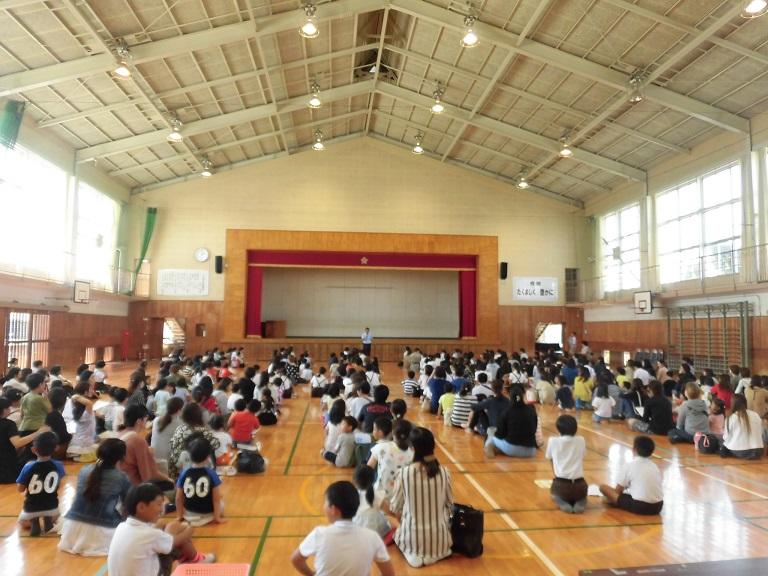 校内の出発式で校長先生からお話がありました。子どもたちは真剣な表情で聞いてました。