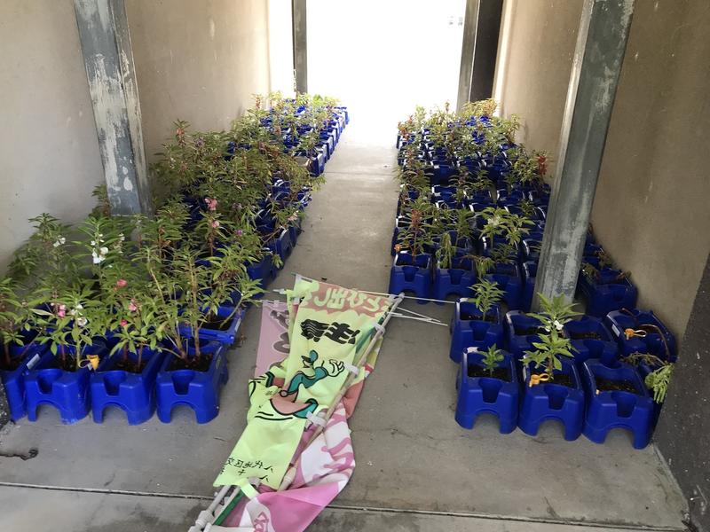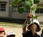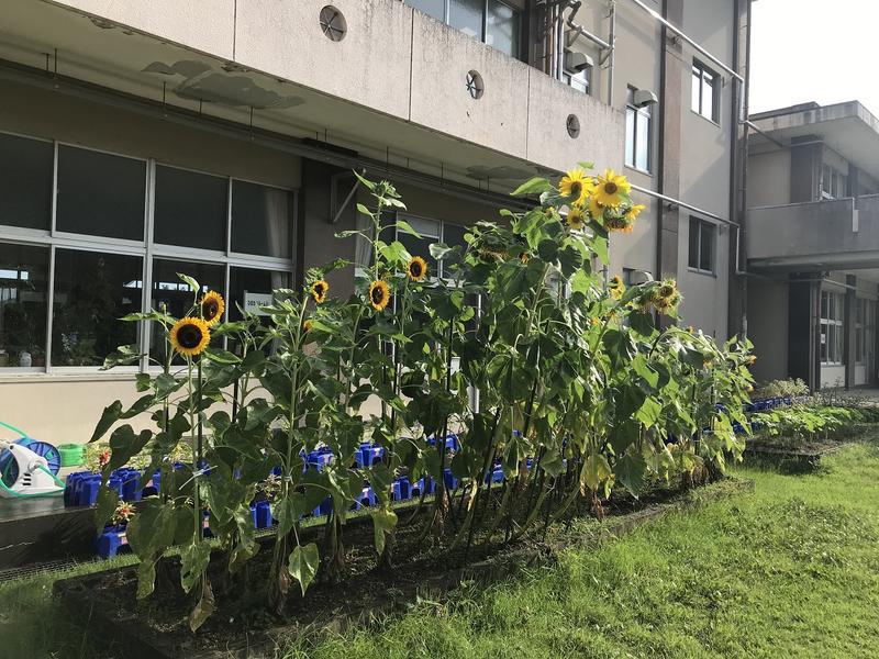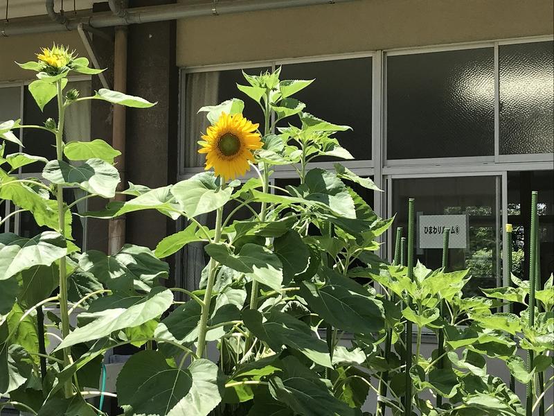1年生が朝顔を育ててます。ずいぶん成長してきました。
