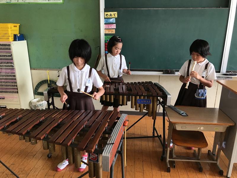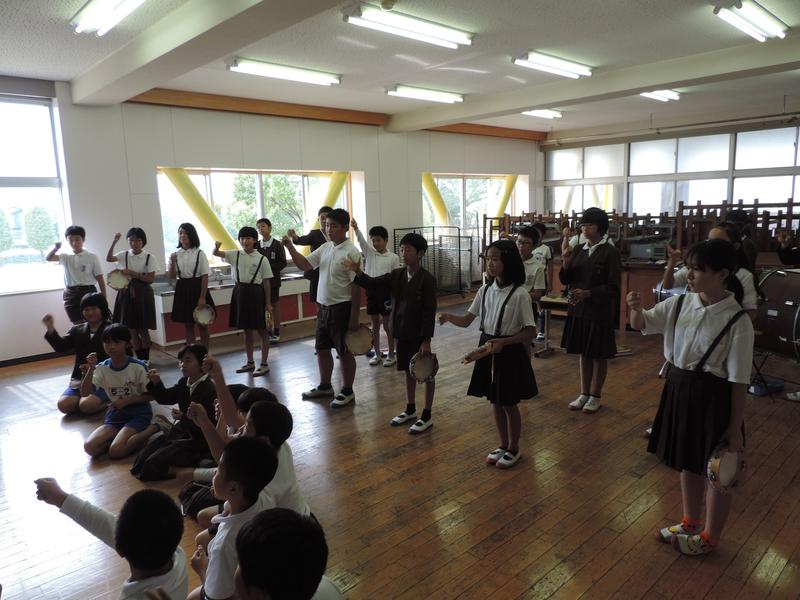子どもたちが普段使う楽器(リコーダー・鍵盤ハーモニカ・大太鼓・シンバル・トライアングル)も演奏されました。音色の違いに驚く子どもたちでした。