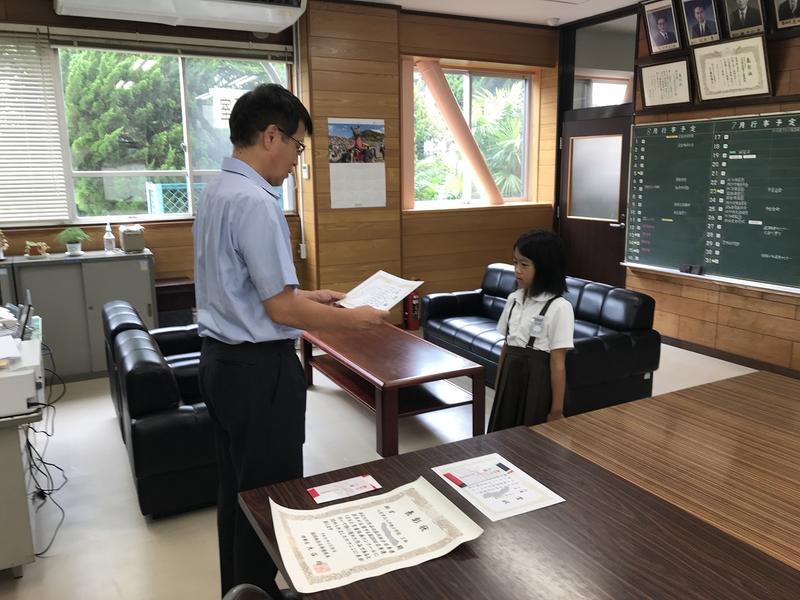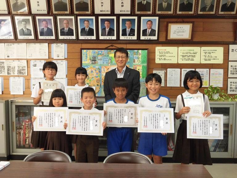 先日、校長室にて表彰式がありました。八代発明工夫科学展、明るい選挙啓発習字についてでした。表彰を受ける子たちの誇らしげな表情がありました。