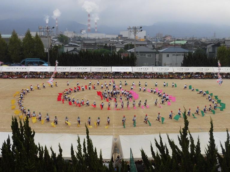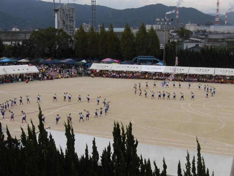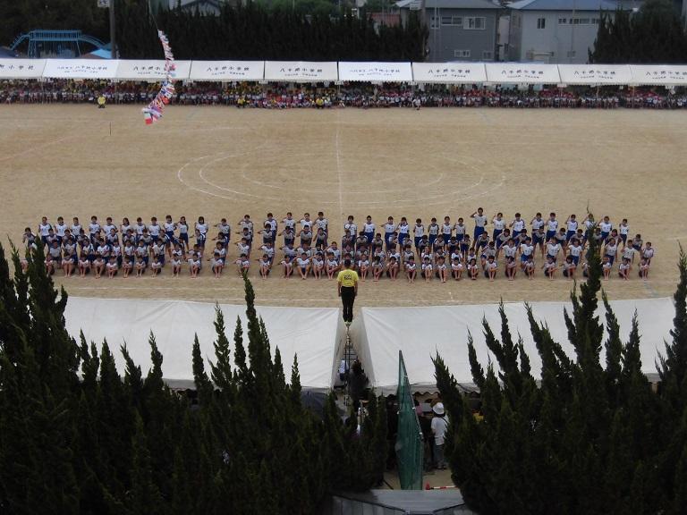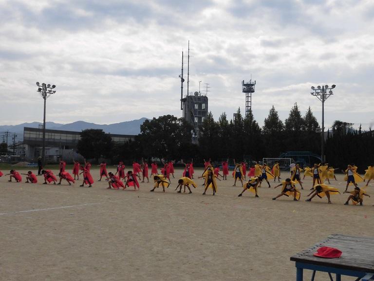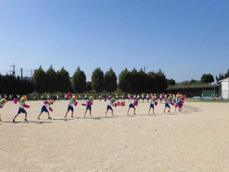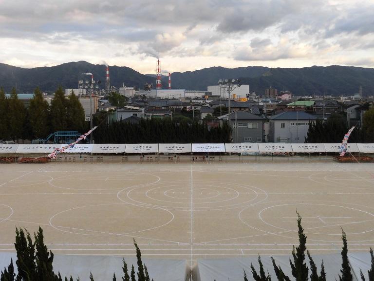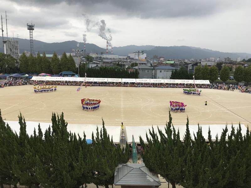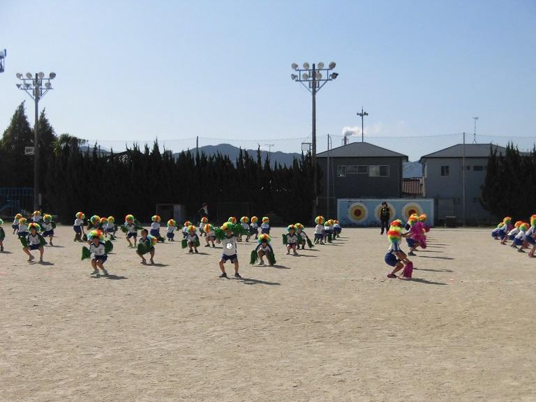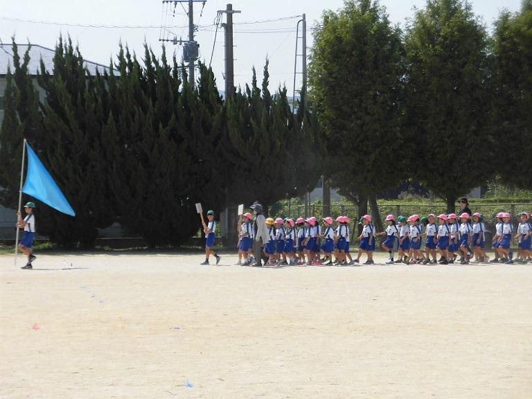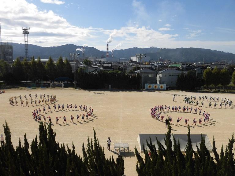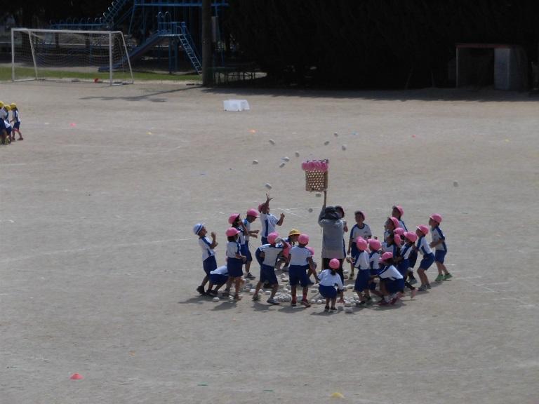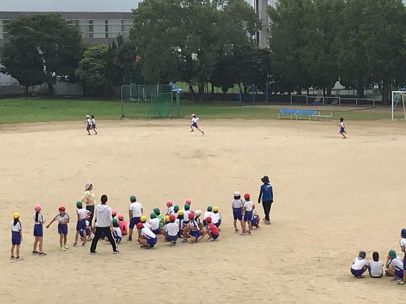 中庭にて、折り返しリレーです。大声援の応援でした。