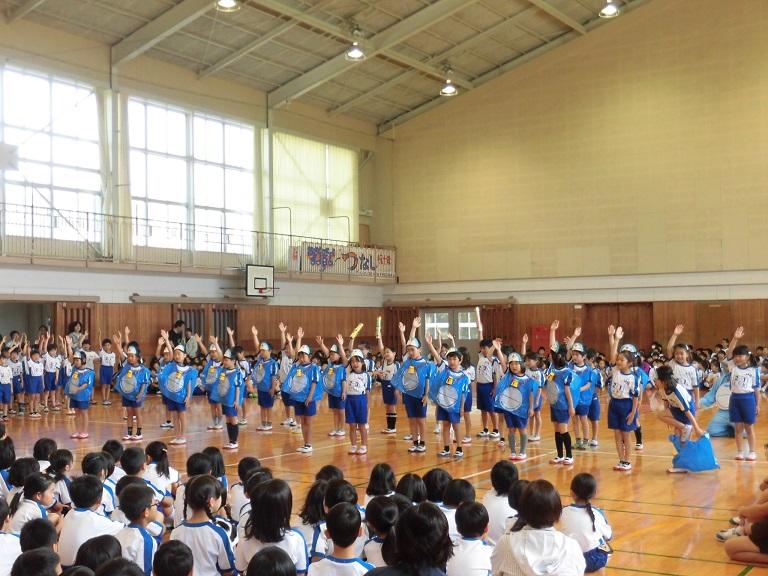 本日は歓迎会と歓迎遠足でした。歓迎会では各学年工夫した発表を披露し、1年生は大喜びでした。遠足では6年生が1年生の手を引き、がめさん公園へ行きました。絶好の遠足日和で大いに楽しむことができました。