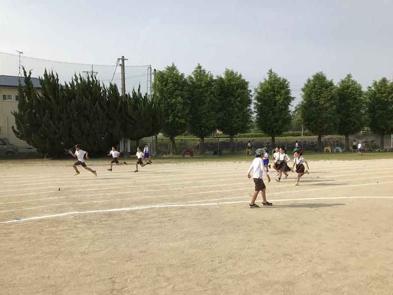 5年生体育、ハードル走の様子です。