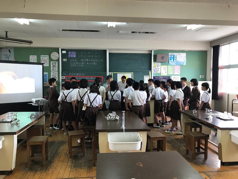 班で協力して実験を終えていました。
