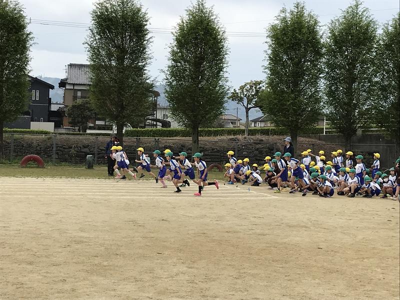 2年生の体育授業の様子です。スタートの仕方を学習し、全力ダッシュです。