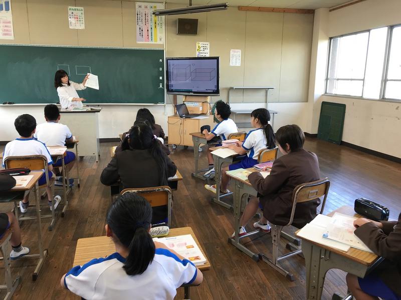 体積を求める学習で、薄い紙を使って大きさを比較しました。